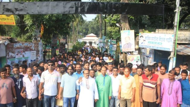 সরকারের উন্নয়ন তুলে ধরে উপজেলা চেয়ারম্যান হীরা বাচ্চুর বিশাল শোভাযাত্রা
