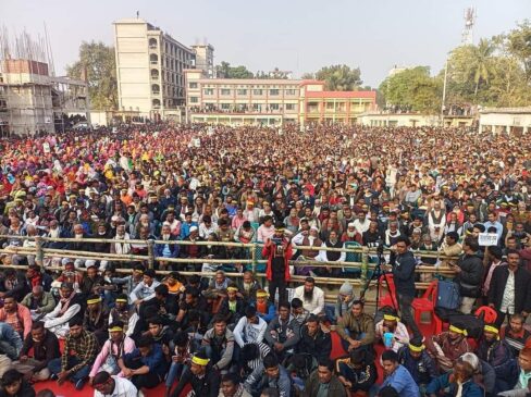 বাগমারায় নৌকার হাজার হাজার কর্মী-সমর্থক নিয়ে নির্বাচনী জনসভা কালামের